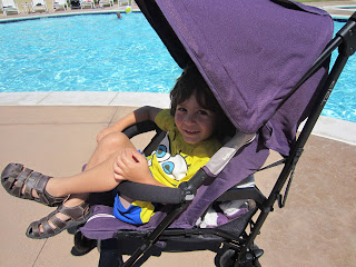 Addendum:... I pushed it ALL over the OC Fair a couple of days ago. I mean all day, and all night. That's what happens when you have older kids who like rides, sigh. I have to say that it was just brilliant. We had purses and backpacks and bags piled up in the basket. SP 2.0 jumped in and out all day. Much of the time I was holding a coffee or one of the kid's drinks in my other hand, so I mostly pushed it one-handed. A stroller with smaller wheels might have gotten stuck going through the haybarns and aggie places, so I was happy I chose the Versa. But the fair was pretty crowded, so I was happy I didn't have anything bigger.