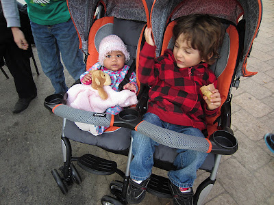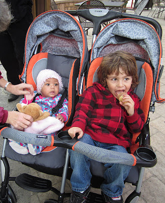 Which is a good thing, because St. Patrick's Day has always been as near perfect of a holiday for us as you can get. The only thing that would make it better would be if I had a baby born on that day. And I did. Last year, he modeled two strollers for this special day. This year, as he turns 2, it's one stroller with two seats. But if he didn't have his little friend Morgan with him, it could still be one stroller.