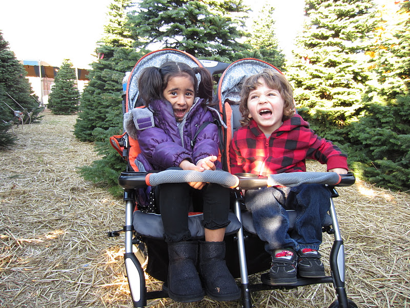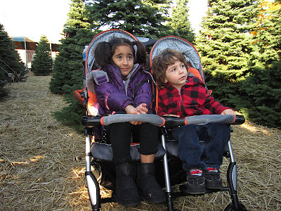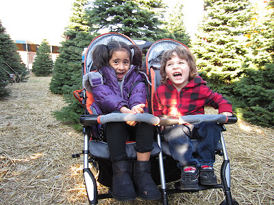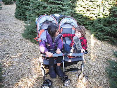 Now I have heard some people say that Combis aren't good for bigger children. But, at nearly 5, this little girl still fits! And I had no problem pushing her and SP 2.0 around the Christmas tree lot.