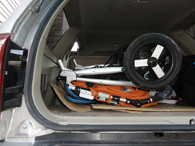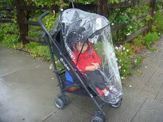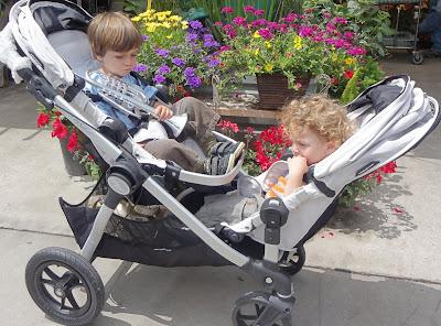 And loyal readers, fear not. I have not changed my stance about eating in strollers. It was DH who gave him the cone. He never spilled, thank goodness! But if he did, the seat pads are easy to remove, and washable.
