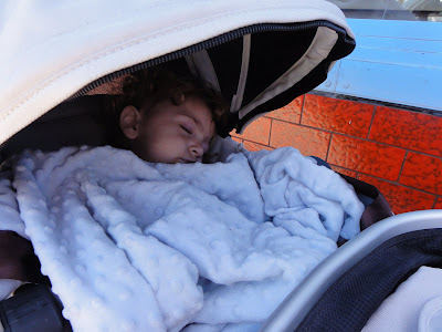 I really could have used this yesterday. I was at an all day, outdoors, very sunny festival. After running around, SP 2.0 got very sleepy. And I happened to be using a stroller with a short canopy. And I forgot to bring the SnoozeShade. So I had to do the sloppy and sliding blanket over the canopy thing, so he could nap.