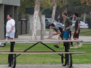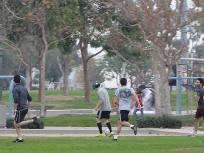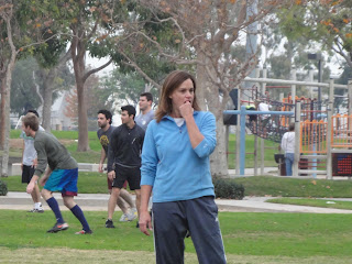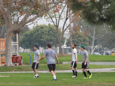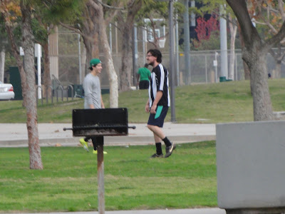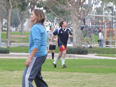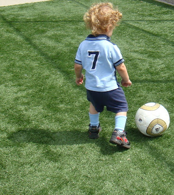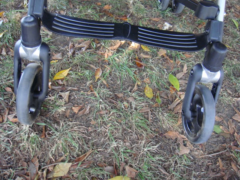 The only thing is, that our particular field is Astro-Turf. Weird stuff, that is. ("No coffee on the field! Sir, bring that back!" the Coach hollered as he chased down the old man. "I'm 80 years old! How'm I gonna' stay awake for 3 hours!" the old man hollered back. The wife apologized as he shuffled away, uttering expletives deleted. ) But look how it clings to the wheels, ugh.
