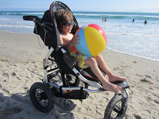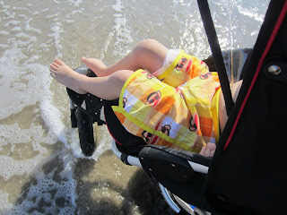 But the seat is also HUGE. Like big enough for an adult to sit in huge. And the seat has a breathable mesh padding, so it helps to keep you cool. It's the ideal beach chair on wheels, ahhhh...