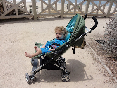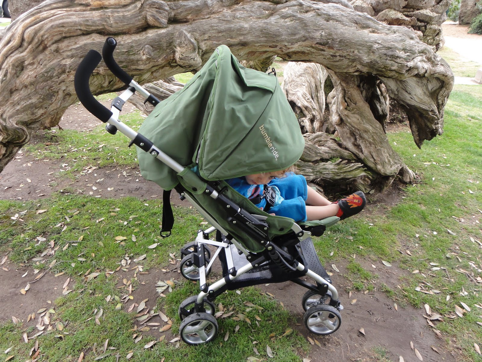 One thing interesting about the design is how angled back the seat is. Makes for a roomy seat and easy pushing. But maybe not the best choice for a younger child who likes to sit up straight.
