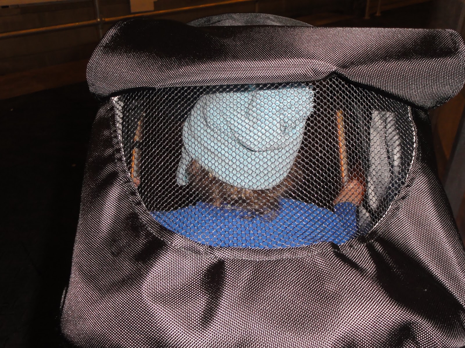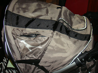 There's a nice big pocket on the back of the canopy. And yay! The top flap closes with a silent magnet, rather than a riiiip sounding velcro.