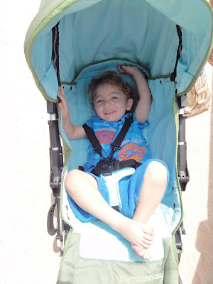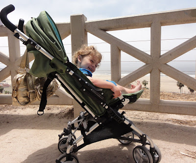 The Quinny Moodd is a great stroller for all ages. For a young child, it reclines easily, by pulling up the lever in the back of the seat. And it has an extended legrest.
