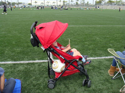 Now I get asked a lot, what stroller (s) are suitable for soccer fields? A lot of parents are taking little ones out to watch their siblings play, and a comfy stroller is a must. Usually I recommend, and take myself, an air tire stroller. But what if you are a minimalist, and don't want a whole fleet? What if you rarely use strollers, except for week-end shopping, parks, and soccer? What if you have an older child who doesn't use a stroller on a regular basis, but can use a ride when tired?